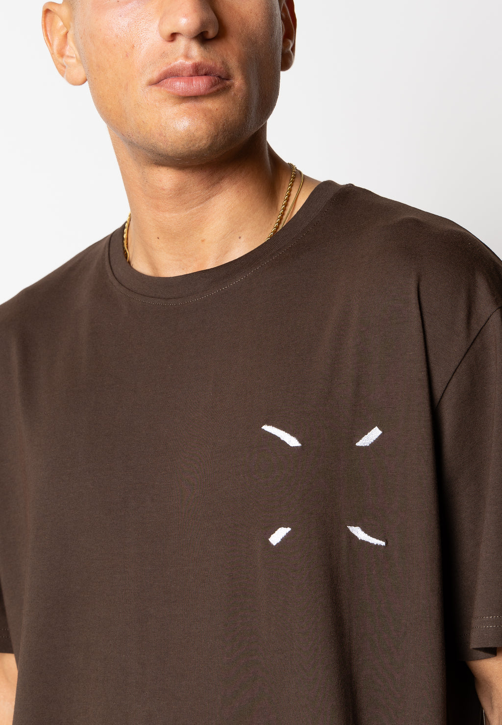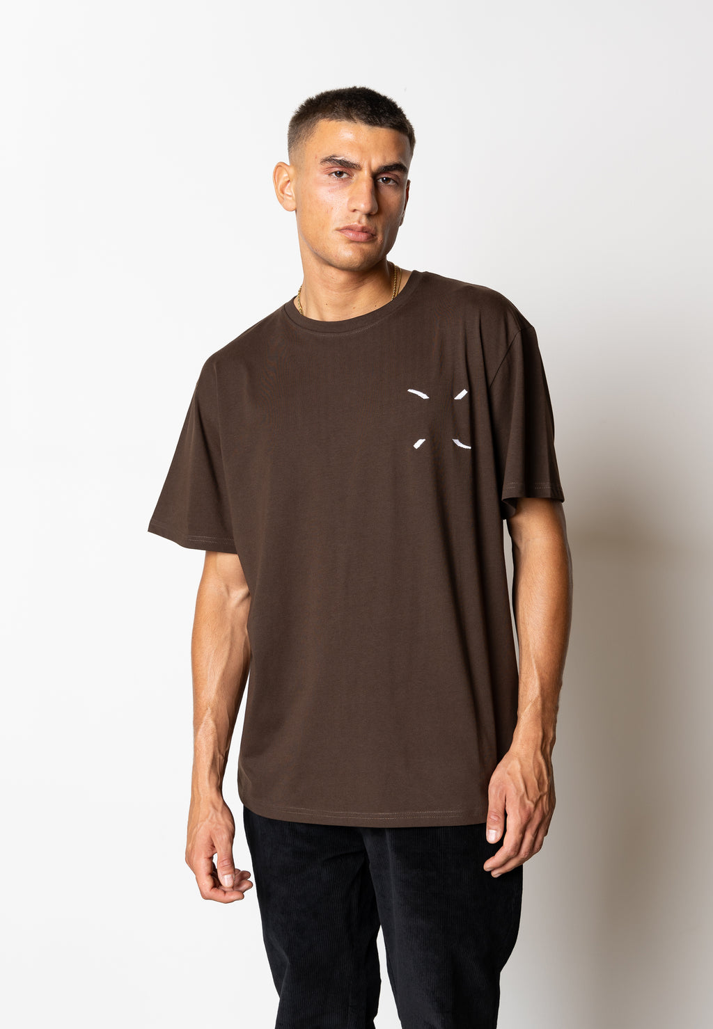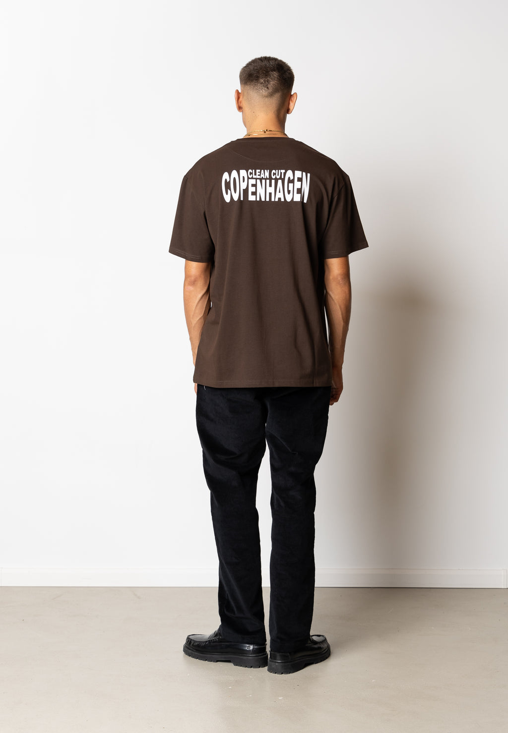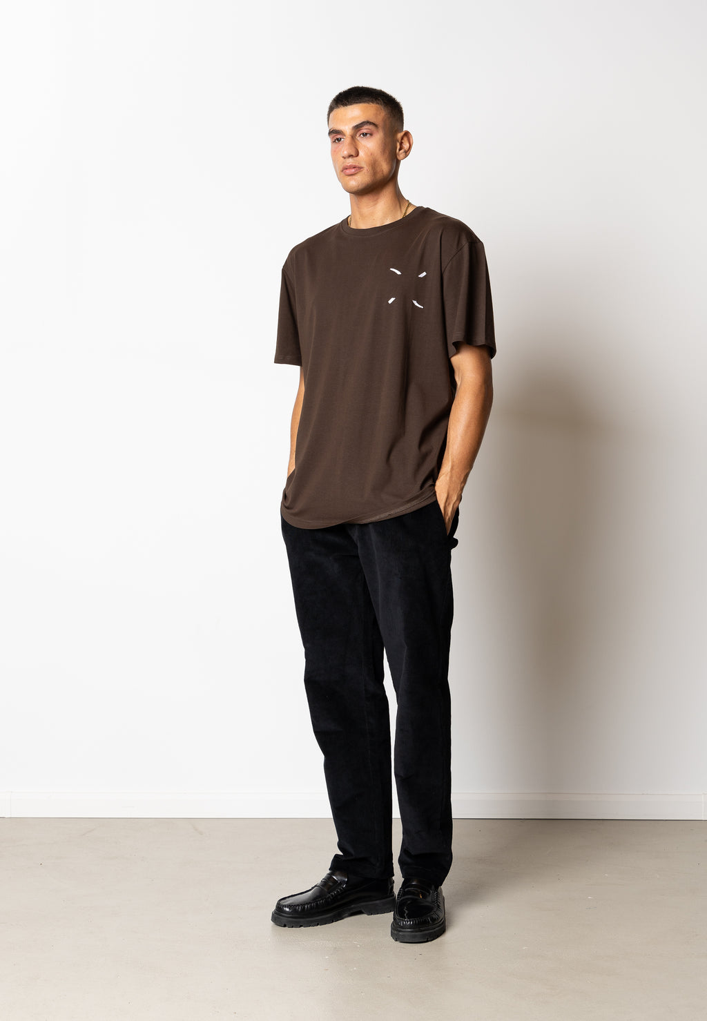 Our organic cotton with stretch regular fitted t-shirt is highly sought after. This one, features a big print on the back. Model wears size L, 188 cm tall.