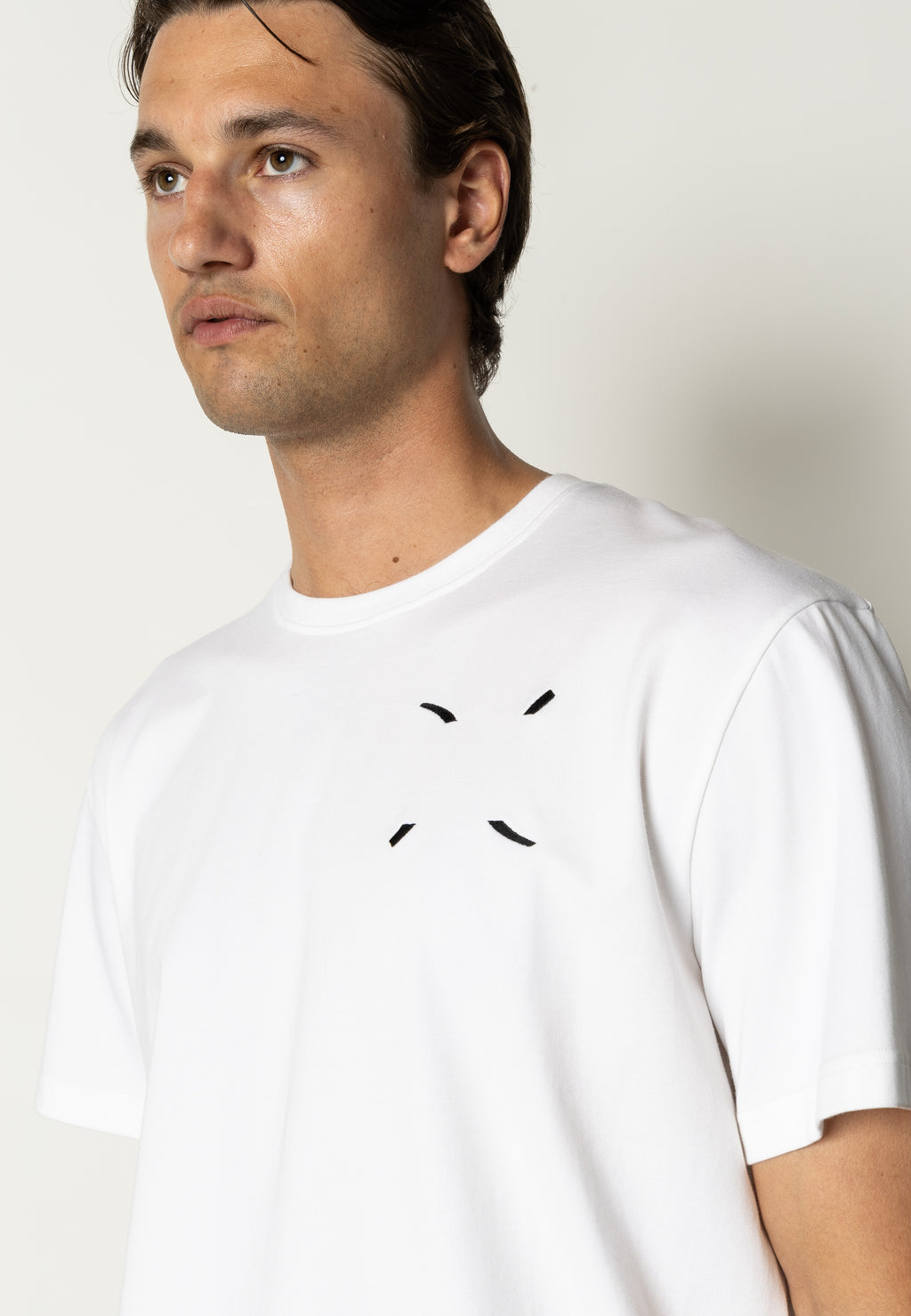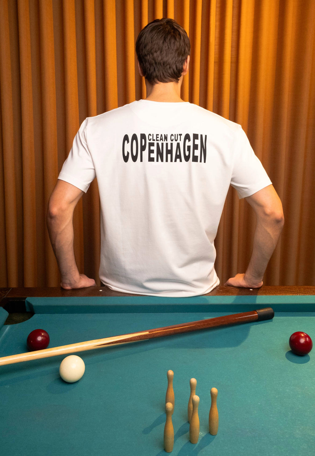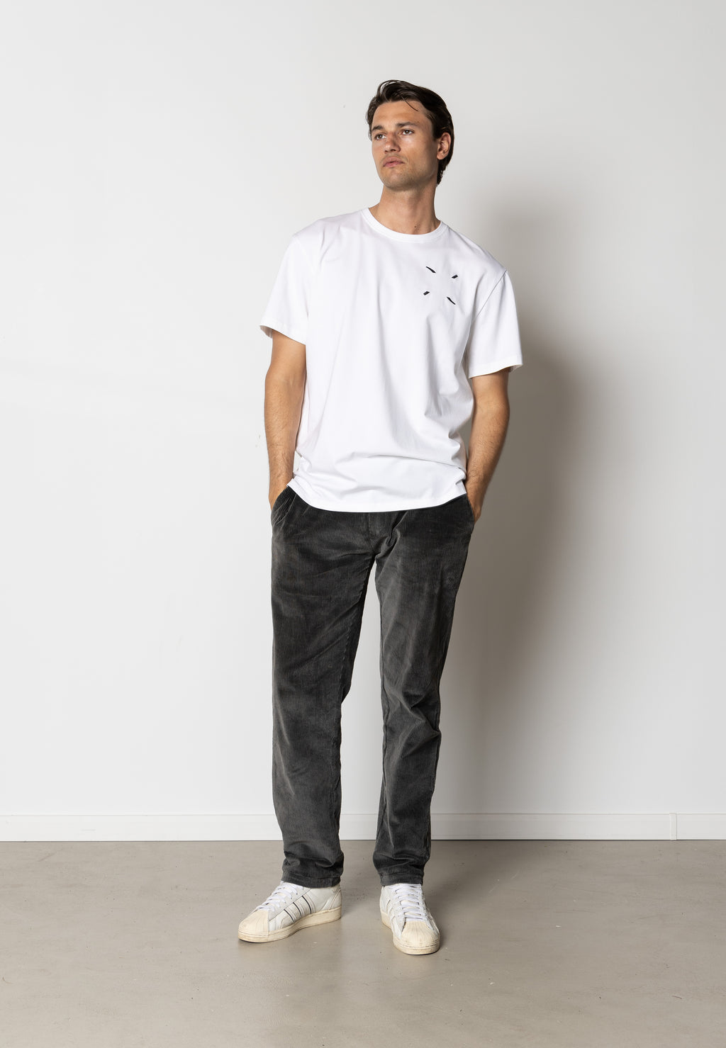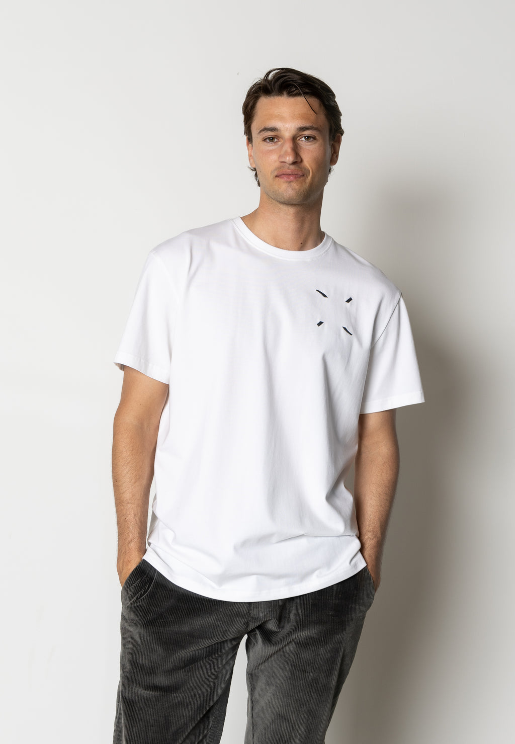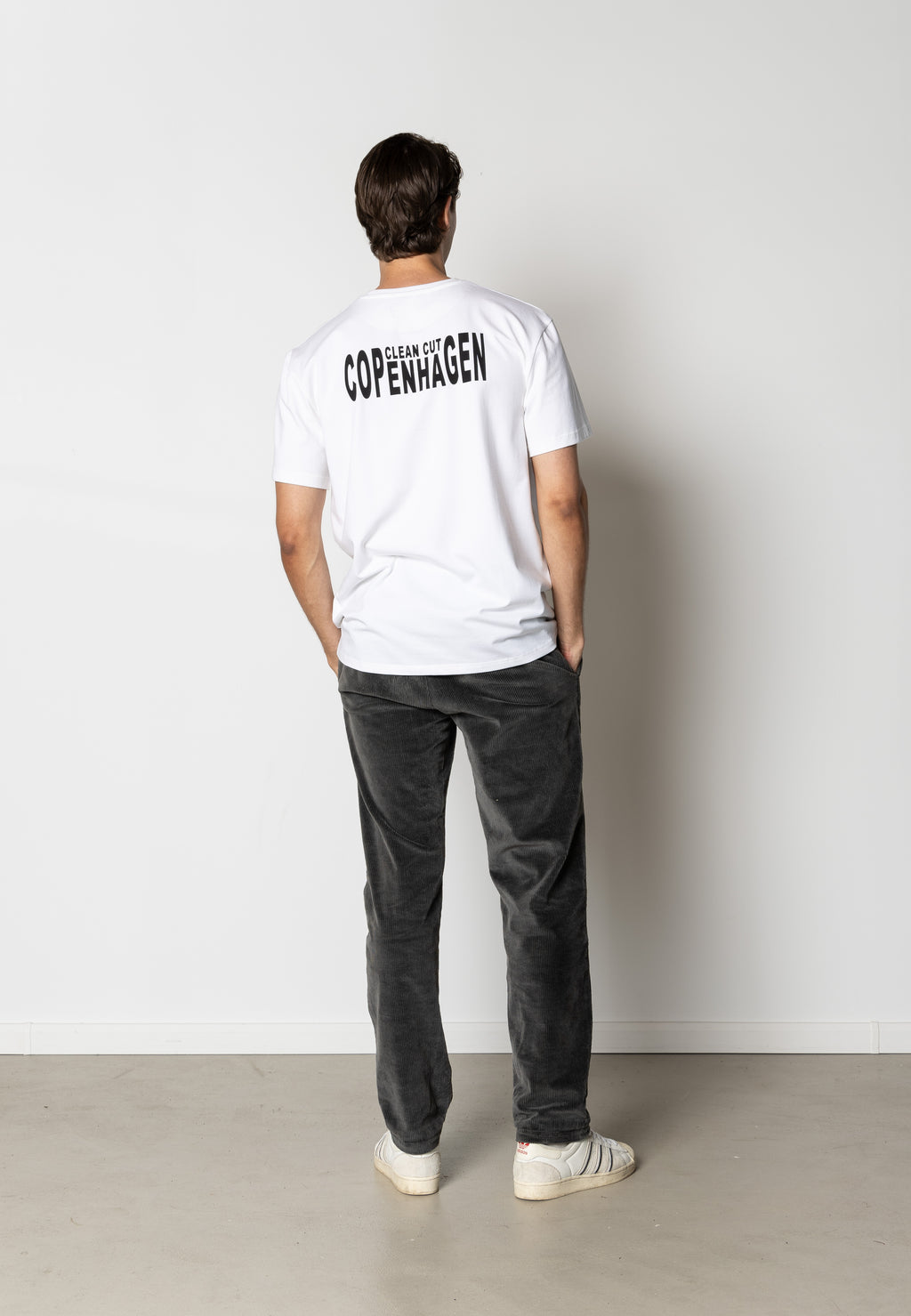 Our organic cotton with stretch regular fitted t-shirt is highly sought after. This one, features a big print on the back. Model wears size L, 188 cm tall.