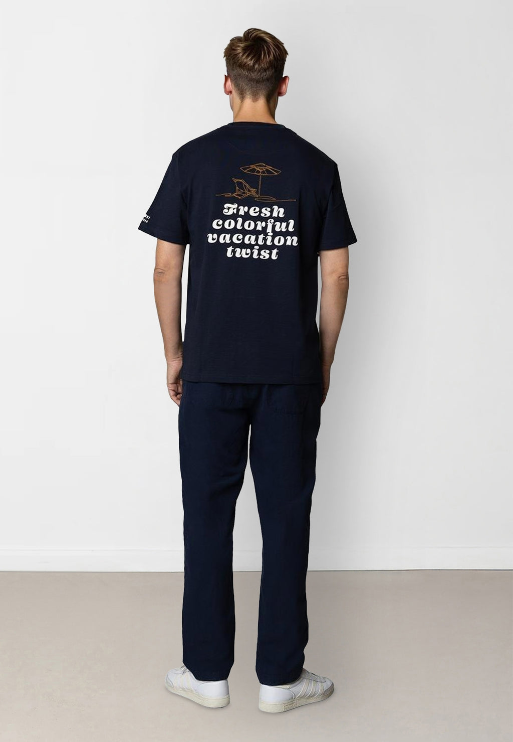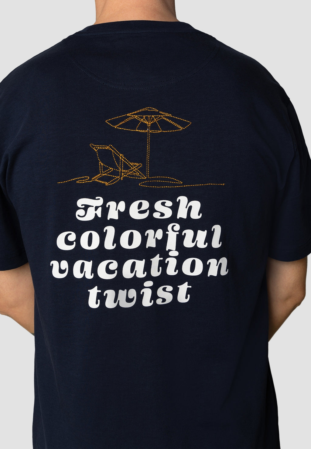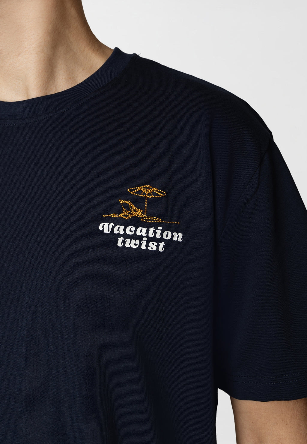T-shirt crafted from organic cotton with a touch of elastane for ultimate comfort. Featuring a print and embroidery inspired by a 'colourful vacation'. Model wears size L, 188 cm tall.
