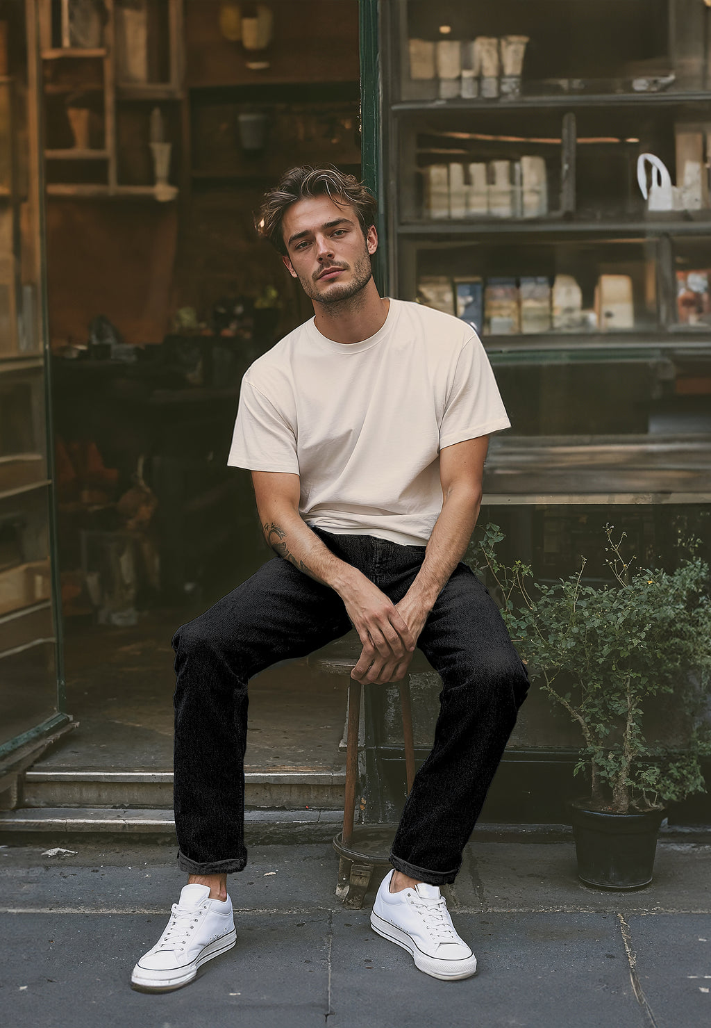 For the Black color option, we chose a size larger for the model to showcase a more relaxed fit.