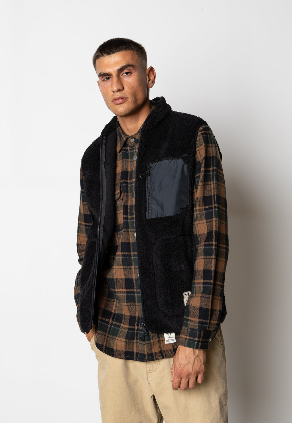 Made of soft nice pine fleece. The Wood fleece vest have side pockets, a small chest pocket with zip and zip closure. The fit is normal/regular.