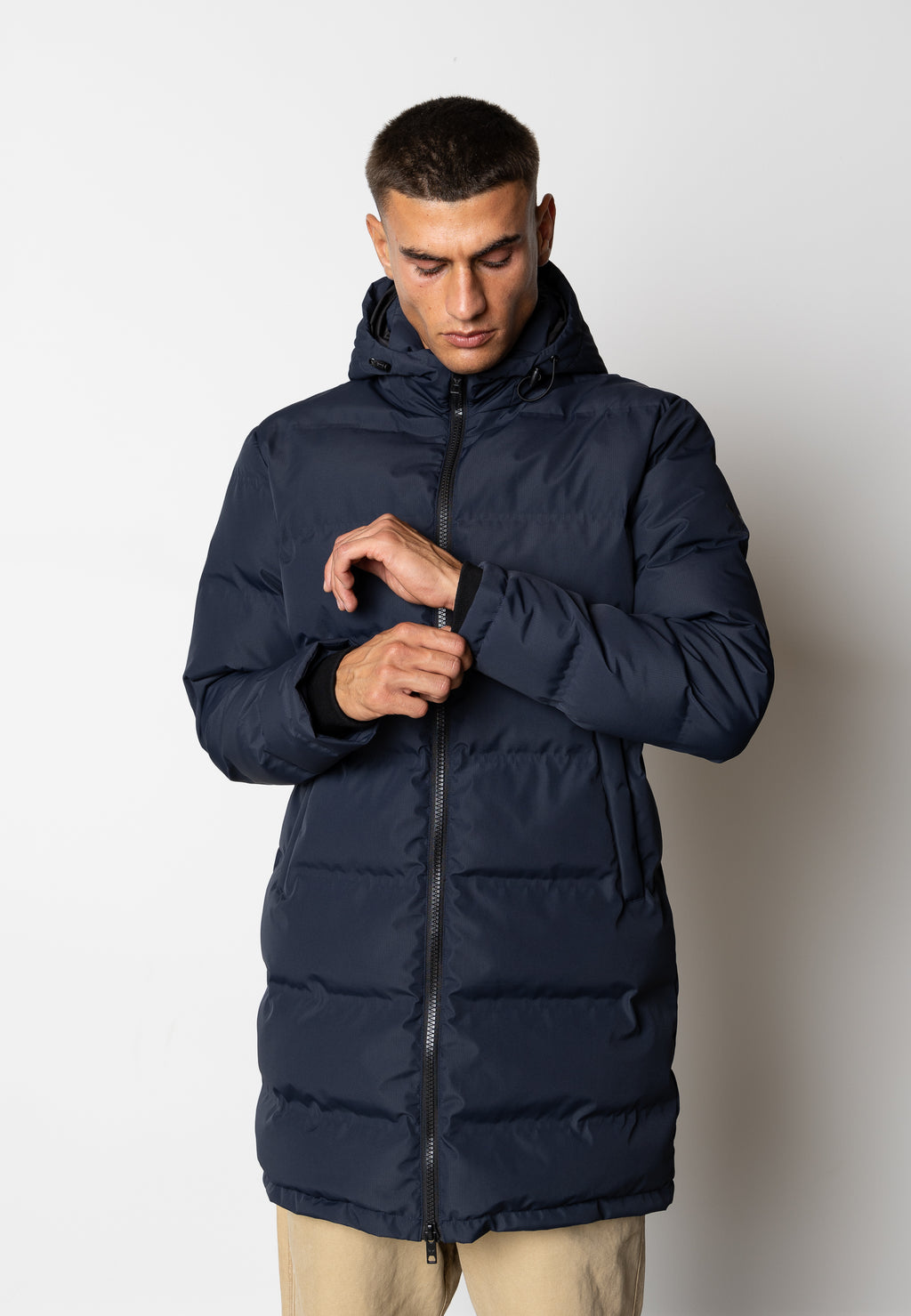 Our Birk long jacket is made with Dupont featherless insulation. Helps you stay warm and dry by trapping and holding body heat while allowing moisture to escape. This jacket is treated with BIONIC-FINISH® ECO. It is a surface treatment and a water-repellent (hydrophobic) impregnation. The product is based on a fluoride-free recipe. Bionics is based on biological methods and systems found in nature. Zip closure. Pockets side and inside.