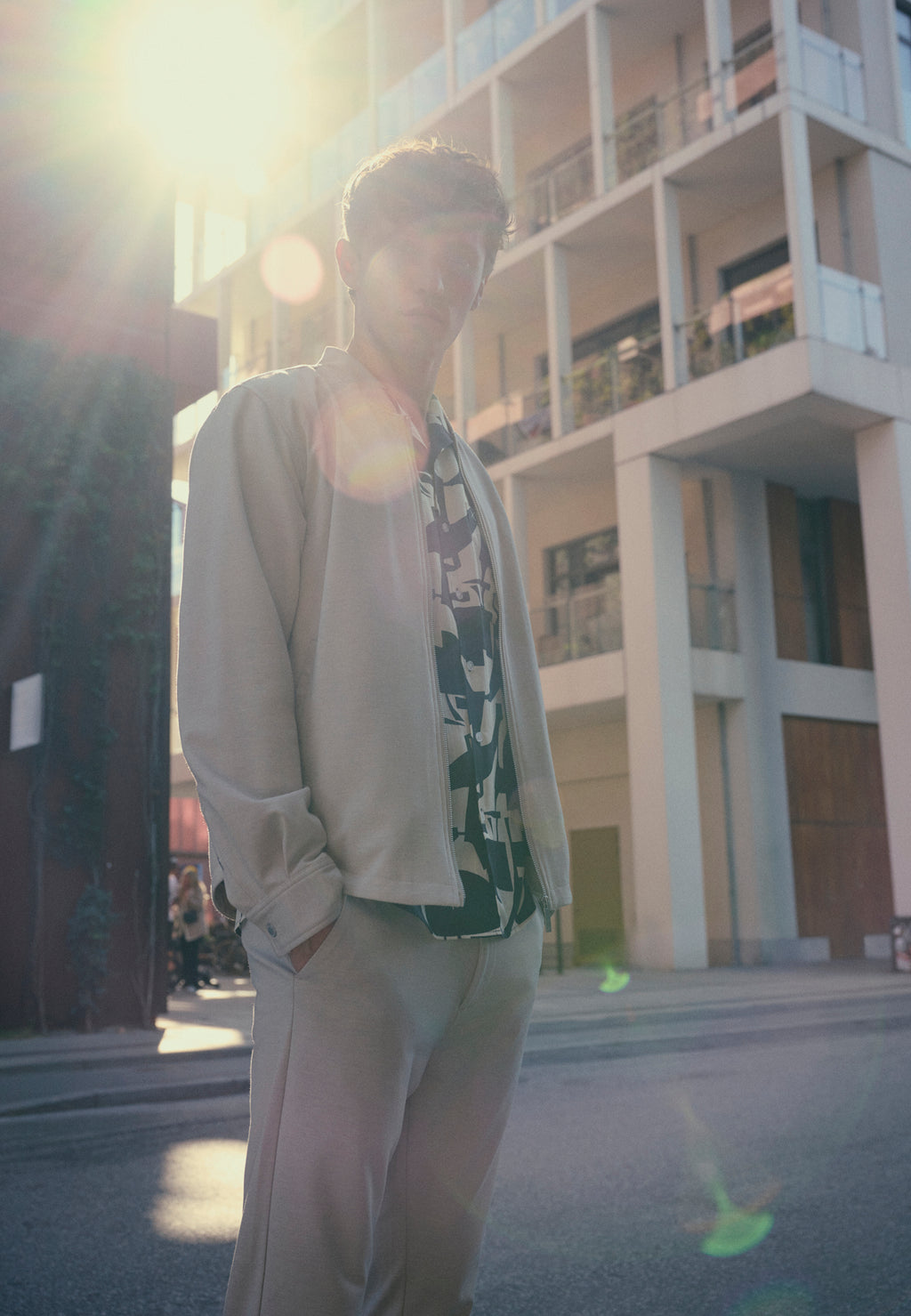 This jacket is made from a nice stretchy jersey fabric. Wear it as a suit with our Brendon jersey pants or mix it up with chinos or denim. The jacket has a regular fit, slightly longer in the back, and comes with side pockets.
