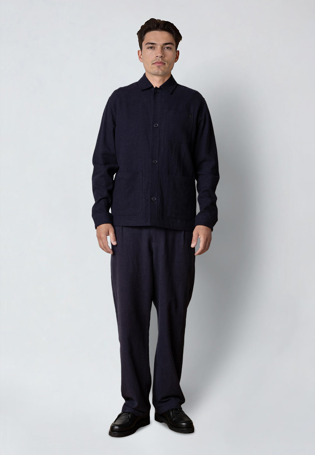 The Chester overshirt/jacket is crafted from a premium cotton-linen blend, featuring stylish pockets and a classic button closure. For a relaxed yet polished look, pair it with the Florence pants to create a modern casual suit.