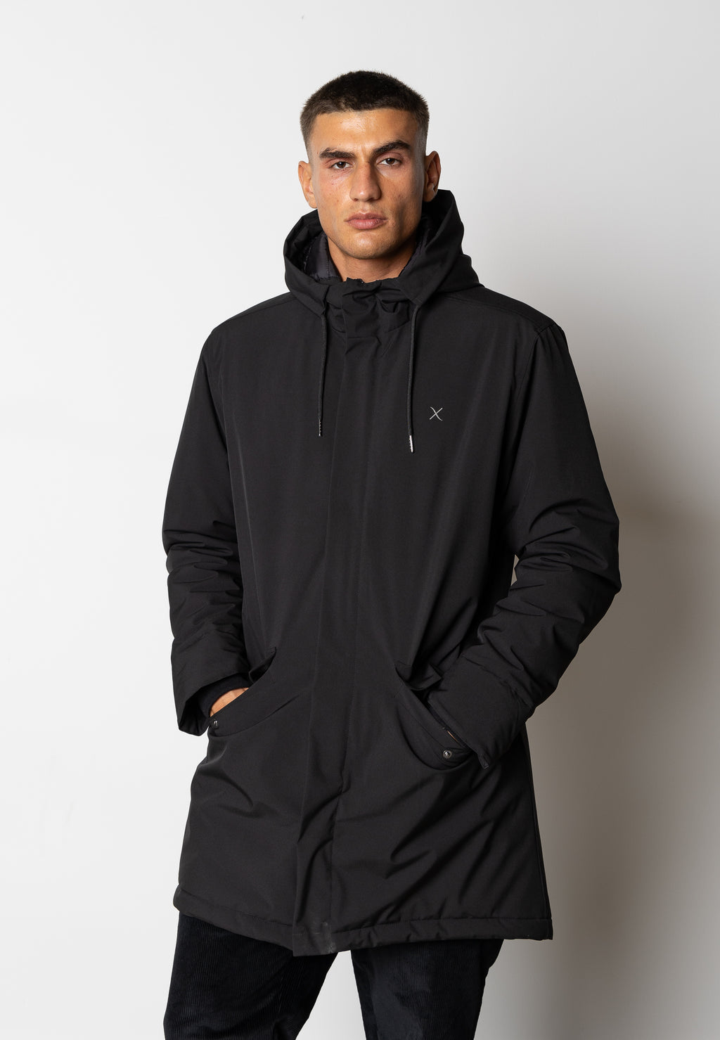 Parka filled with recycled polyester fibre and treated with Bionic Finish Eco, a fluorine-free treatment that provides the jacket with a water and wind-resistant coating. 2 side pockets and 1 inside pocket with zip.