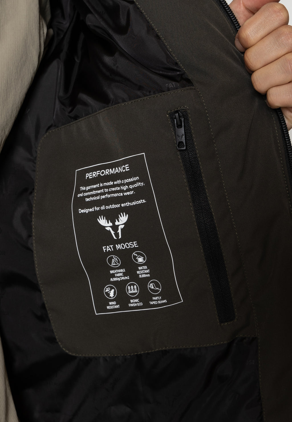 Introducing the Jamison winter parka - the perfect companion for tackling winter weather in style. This hybrid parka is designed with a stylish puffer on the back and features 8000mm water resistant fabric which will keep you dry when out and about. The fabric is breathable, making it comfortable to wear even during strenuous activities in cold-weather conditions. Additionally, the parka is wind resistant and has partly taped seams and Bio finish eco technology to ensure optimal weather control. When zipped up, there is an internal pocket with a zip so that you can easily store your smaller possessions as well as two chest pockets with a zip and two front pockets.