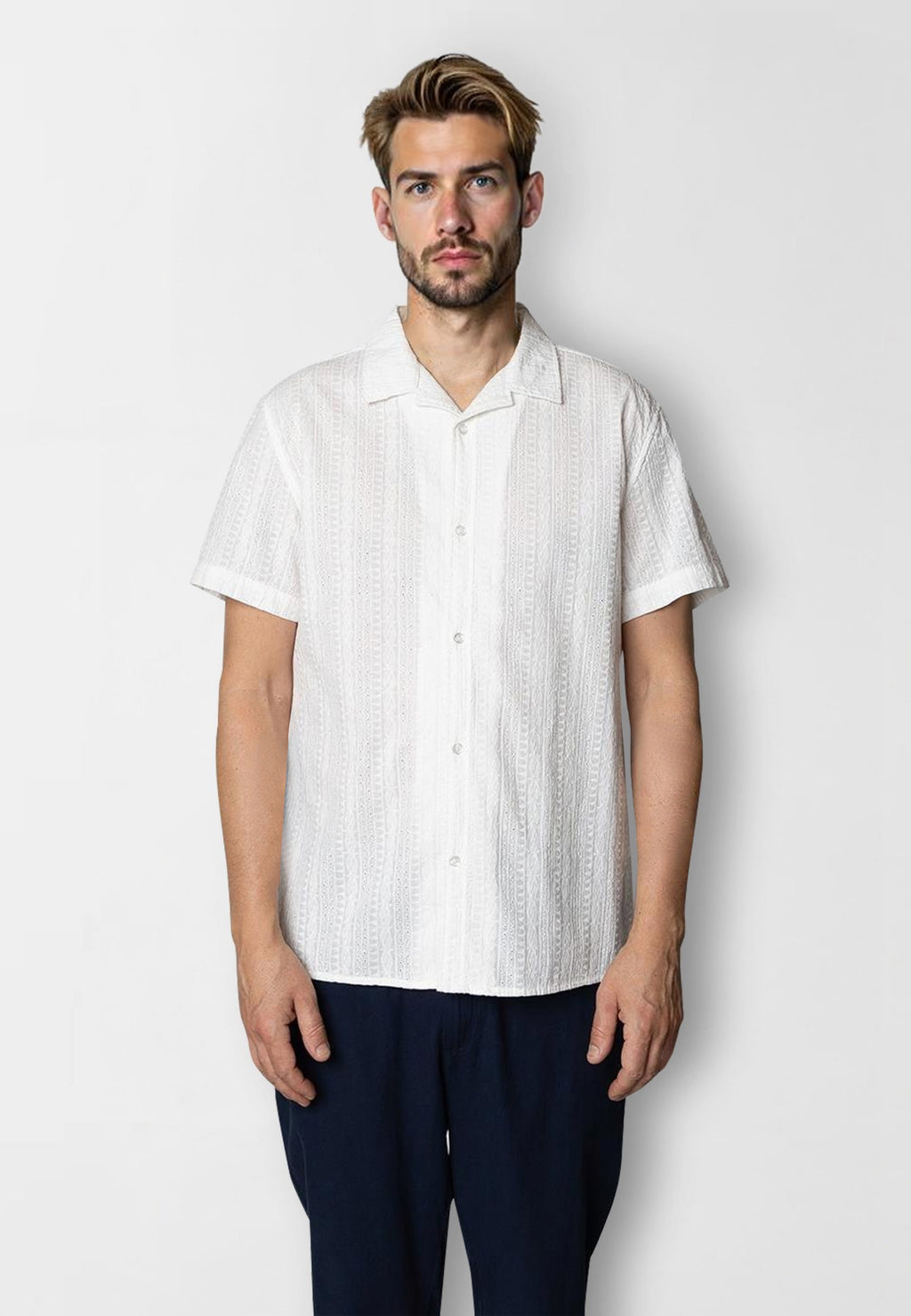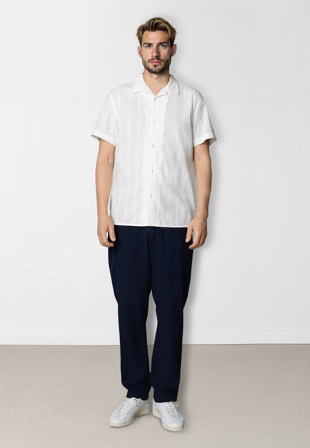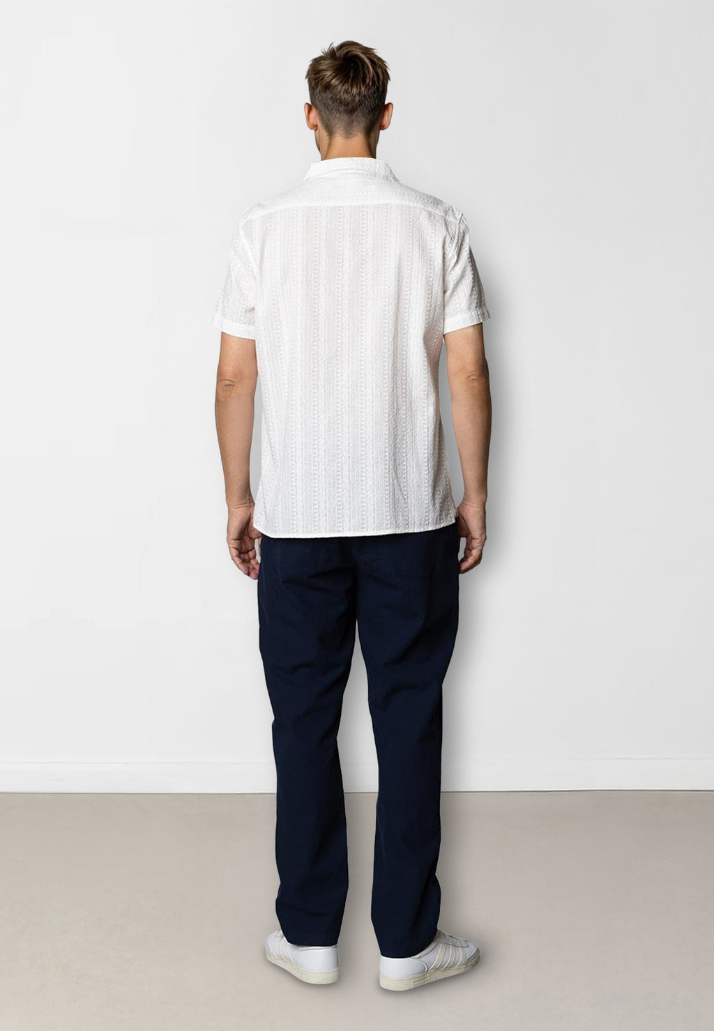 A stylish short-sleeve shirt made from 100% cotton. The patterned fabric adds a unique touch. Designed with a regular/relaxed fit and a classic bowling collar. Model is 188 cm tall and wears size L.