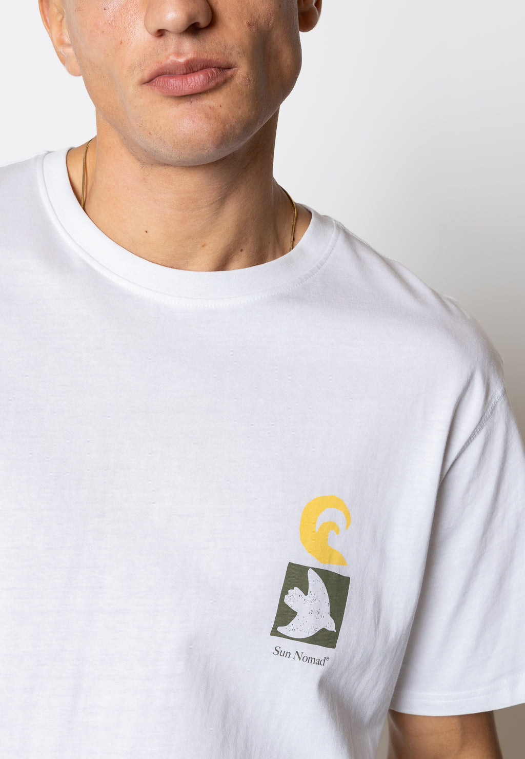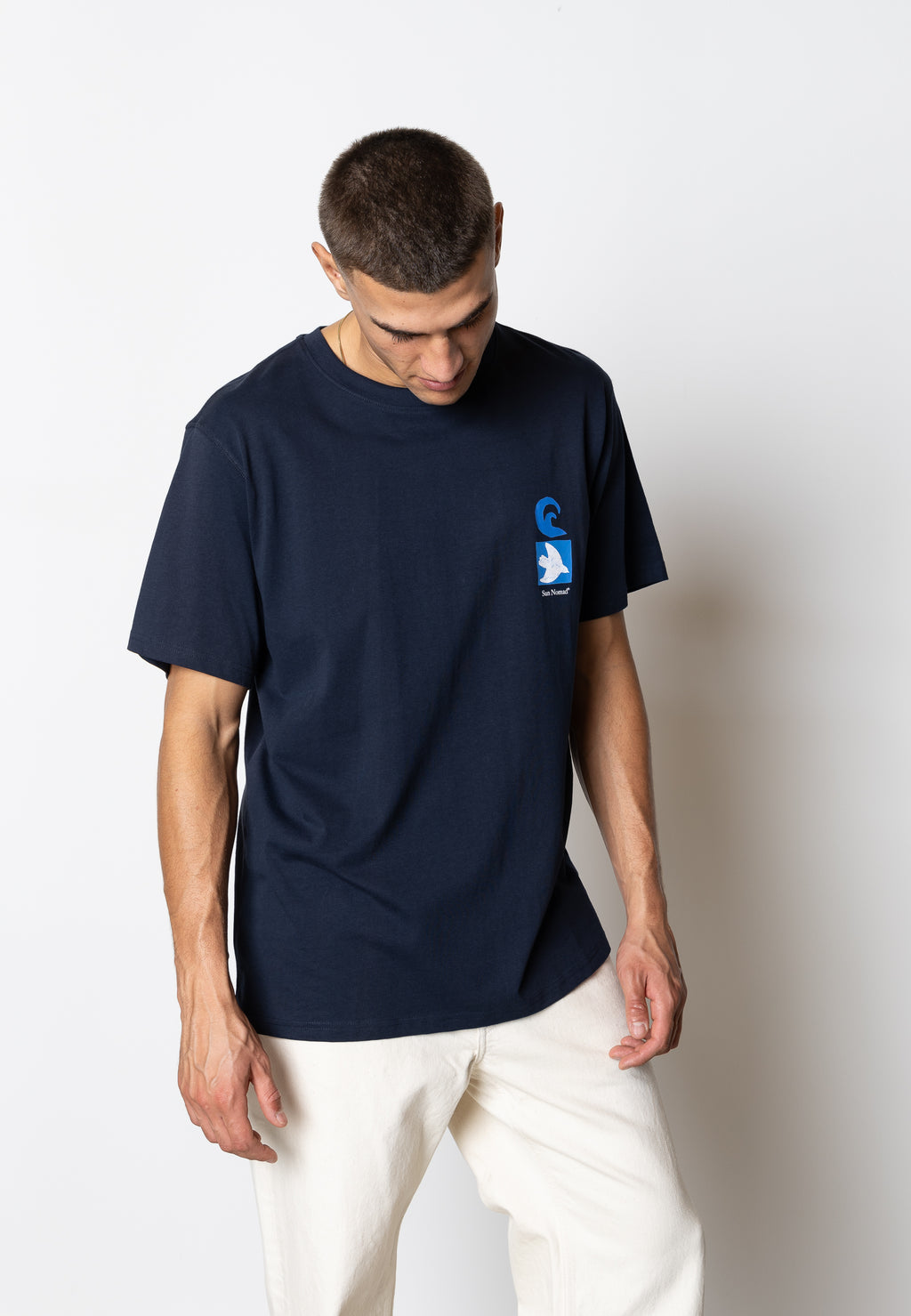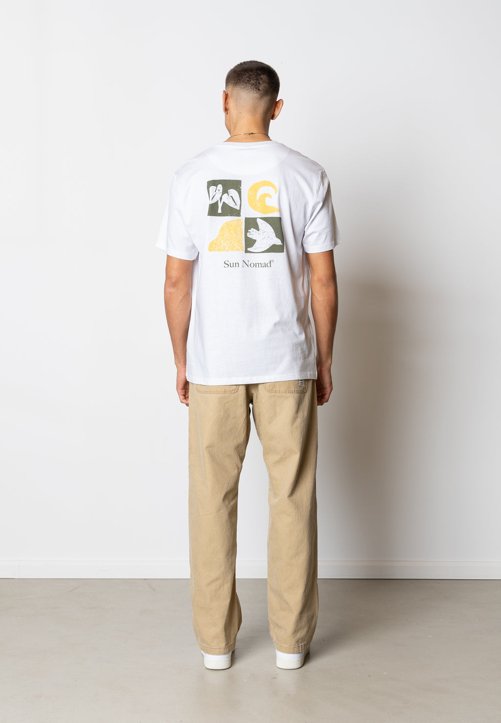 T-shirt made from organic cotton. Regular fit with prints on the chest and back. Model is 188 cm tall and wears size L.