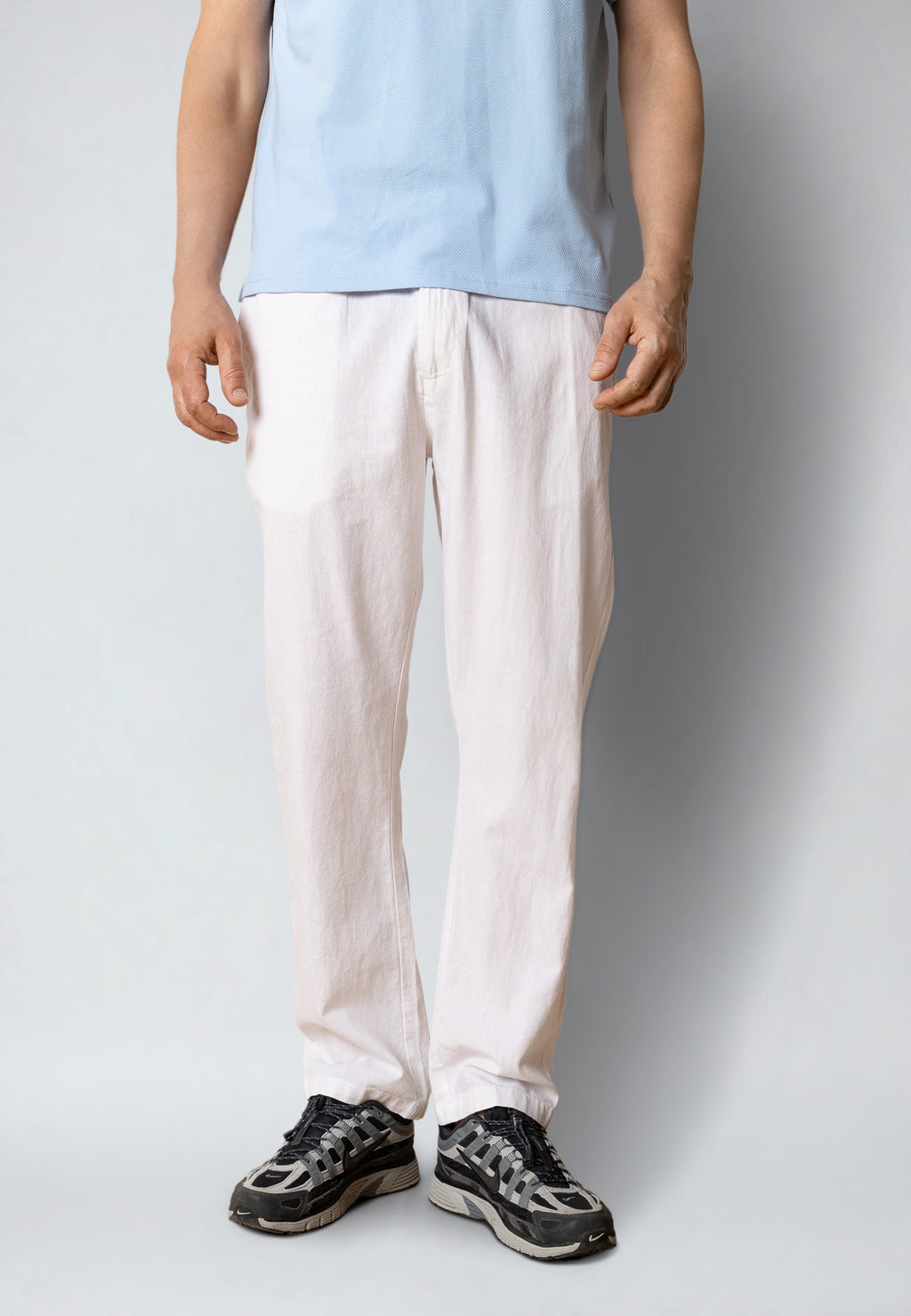 Our new Luca cotton/linen collection is perfect for the season, featuring pants, long and short sleeve shirts, and shorts. Pictured is a soft, regular-fit pant with drawstring and elastic ribbon in waist, that works for both casual and dressier days. 4 colorways.