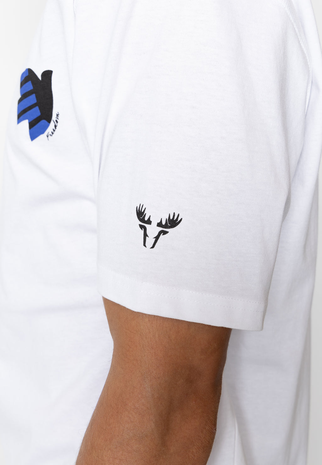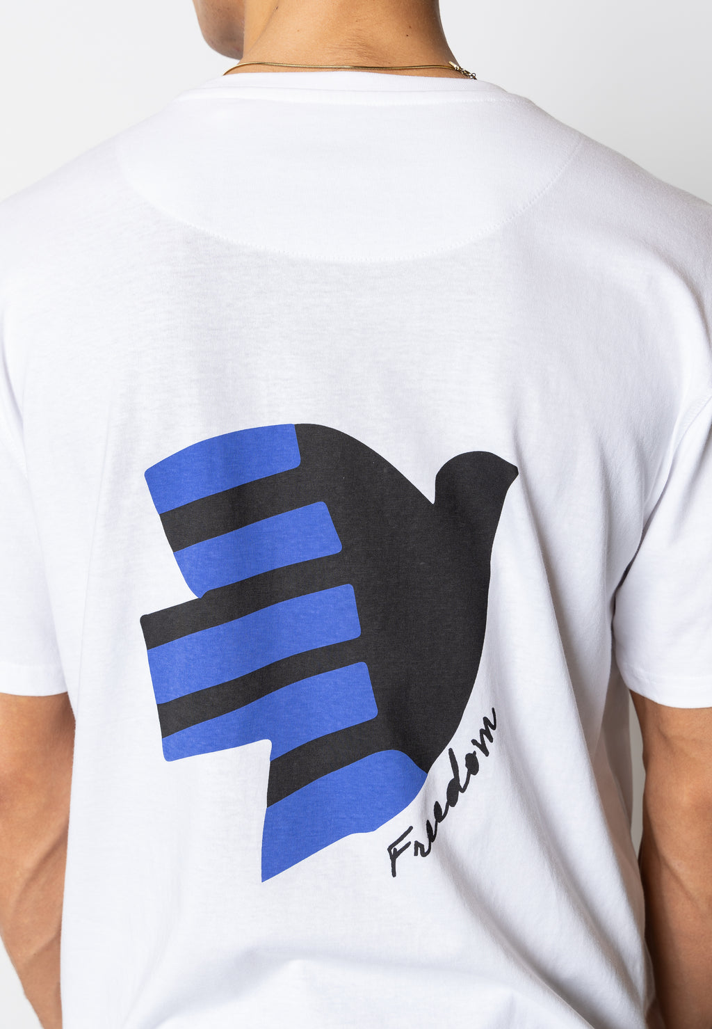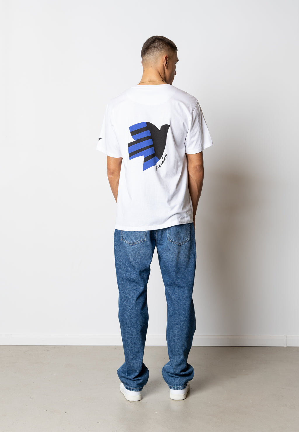 T-shirt made from cotton. Regular fit with prints on the chest and back. Model is 188 cm tall and wears size L.