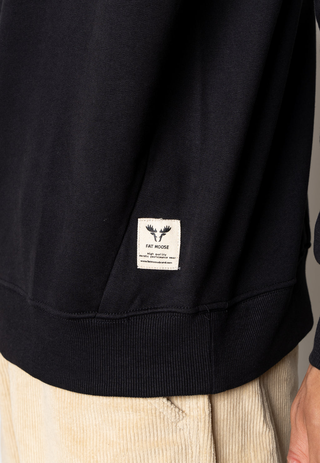 Nelson is a 410 gram sweatshirt made in 100% organic cotton. This quality is soft and really nice to wear. Big Fat Moose print on the back. The fit is regular.Model wears size L, 188 cm tall.