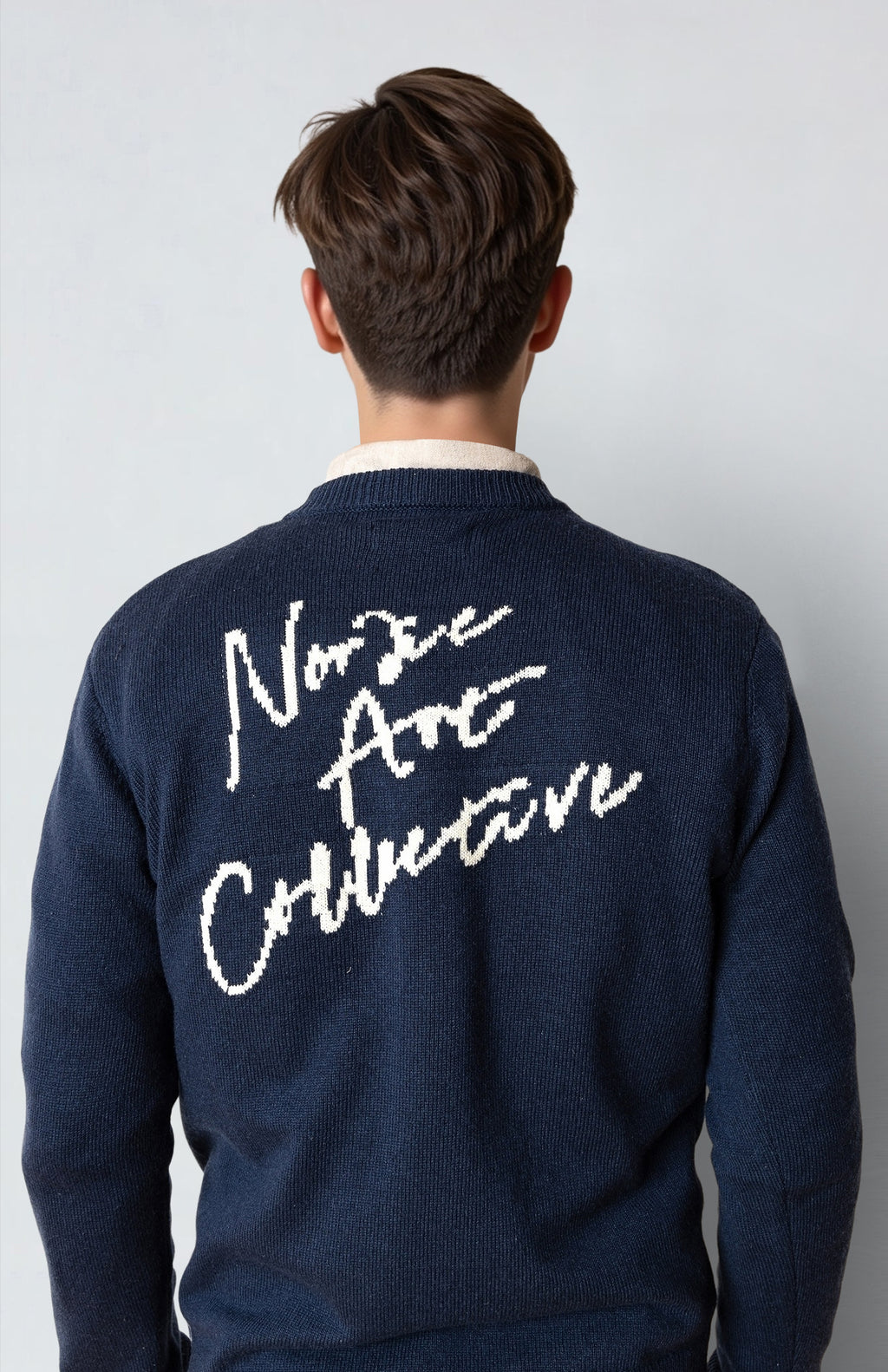 Knitted sweater featuring the text Nordic Art Collection on the back and our signature X logo on the chest. Crafted from a recycled acrylic blend, this piece is soft, comfortable, and perfect for everyday wear.