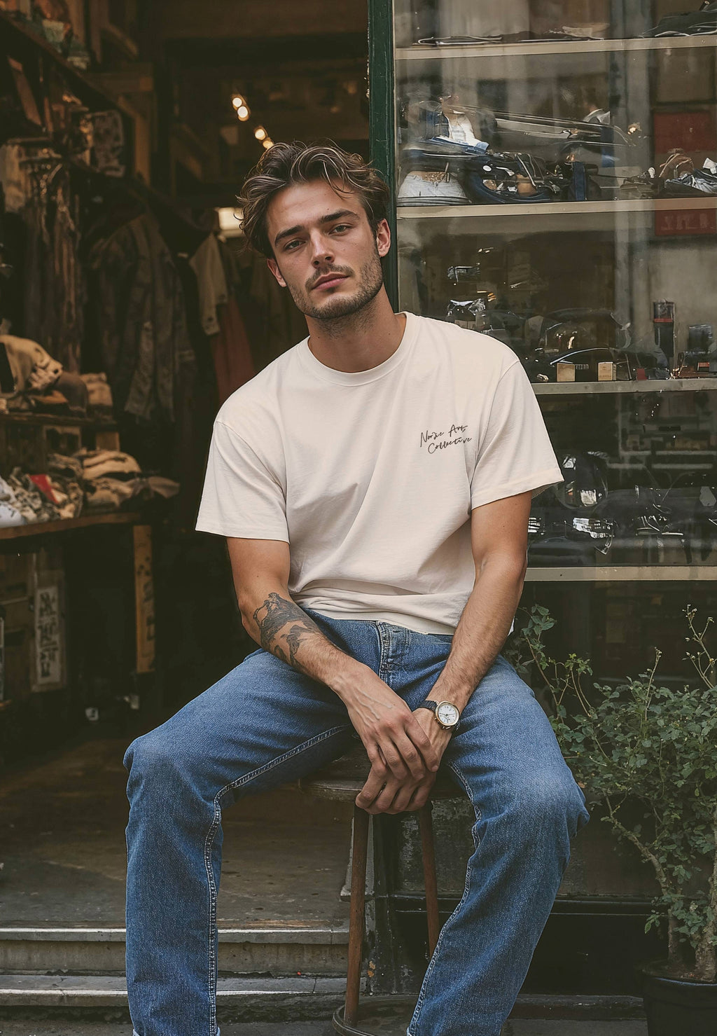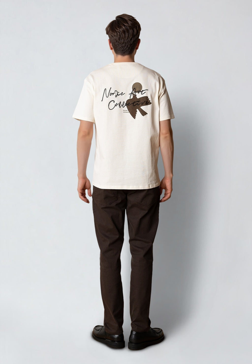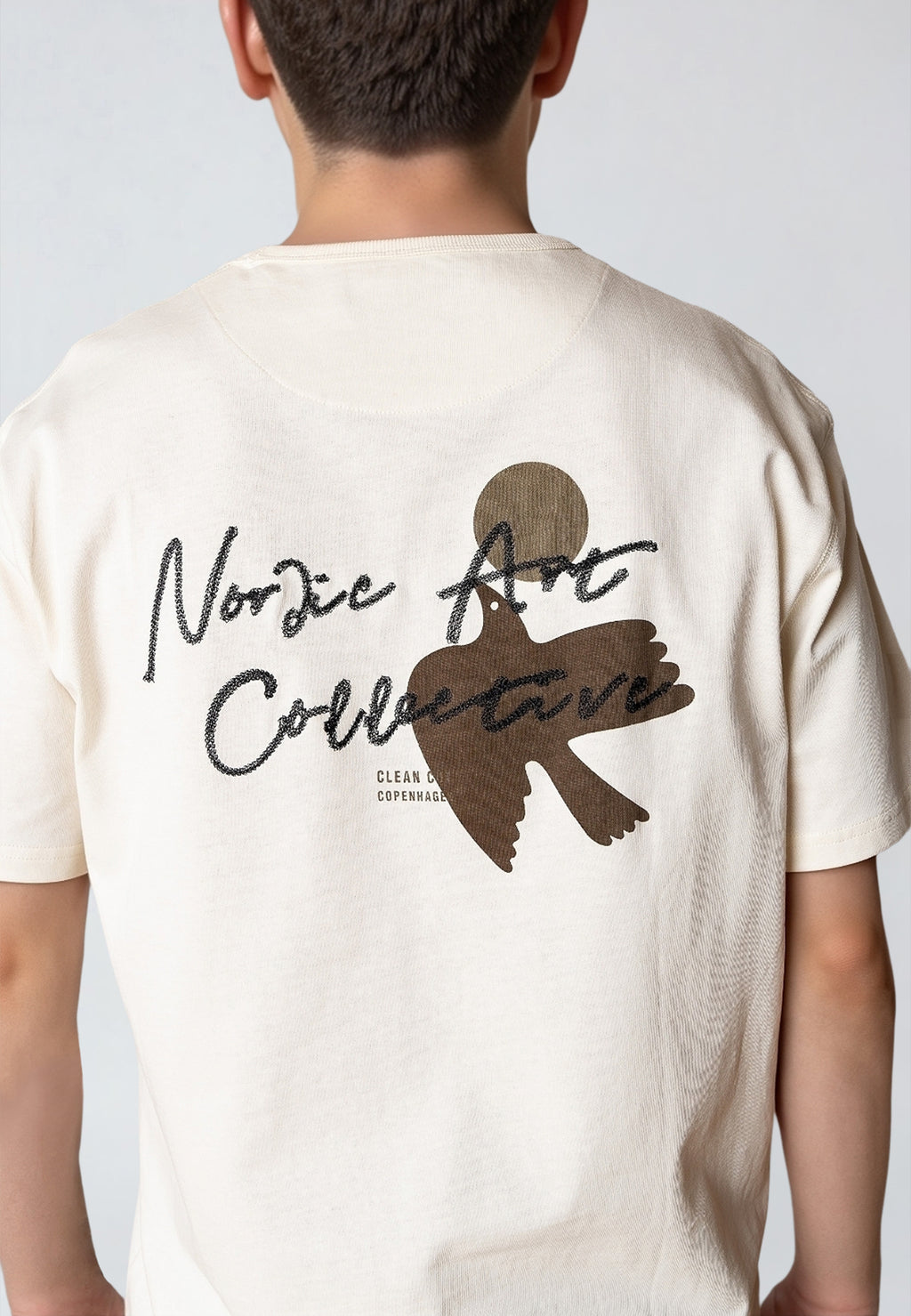 A relaxed-fit t-shirt featuring elegant 'Nordic Art Collection' embroidery on the back and our signature X logo on the chest.