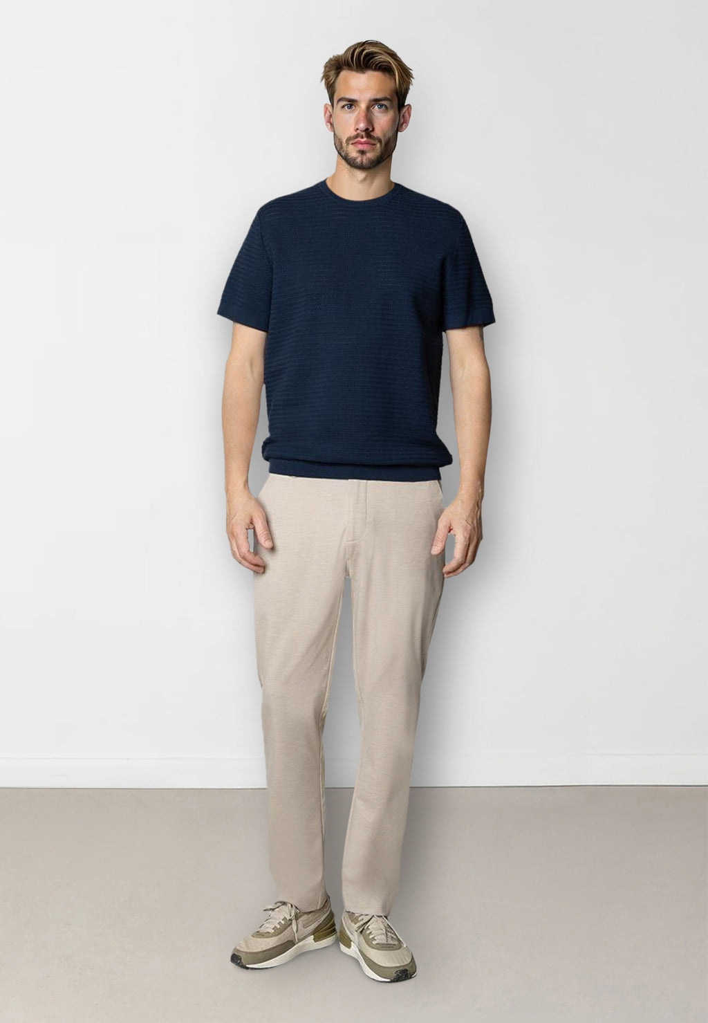 Knitted polos and t-shirts are a huge trend this spring/summer. Made from 100% cotton, this one features a stylish knitted pattern. It has a regular fit, but size up for a sleek, trendy look. Model is 188 cm tall and wears size L.