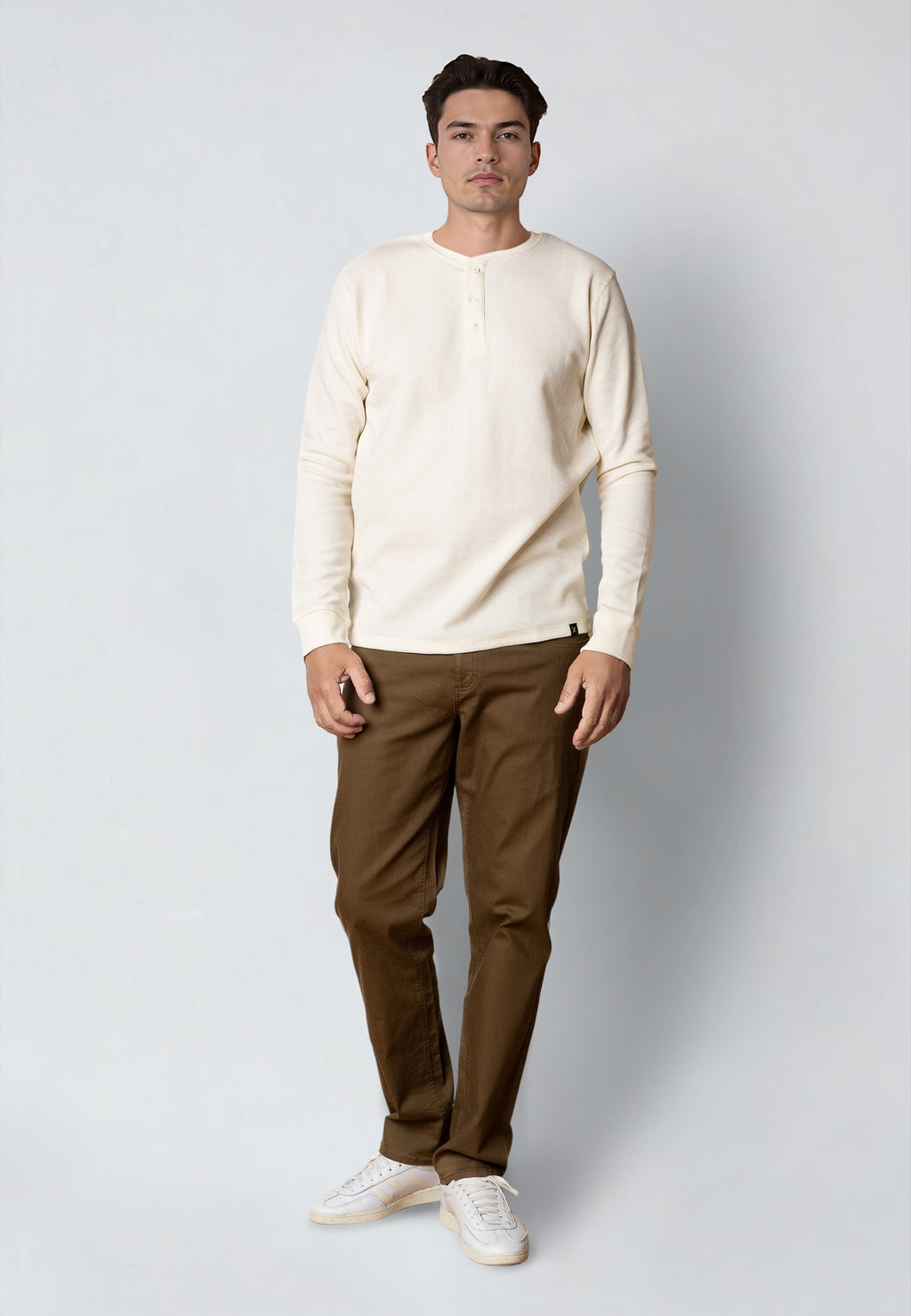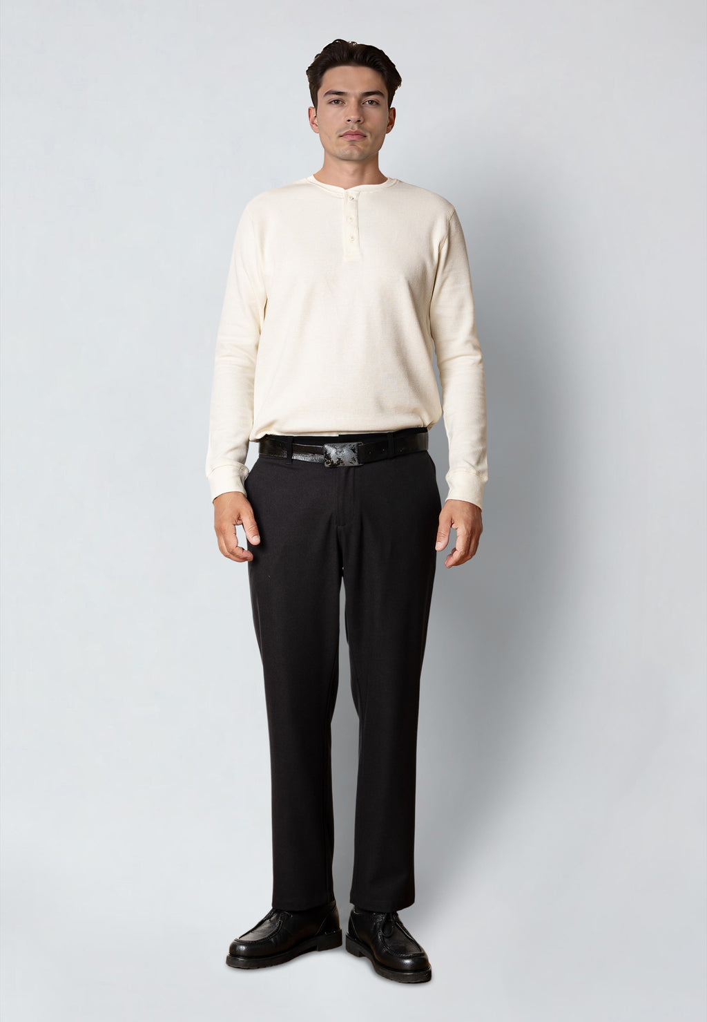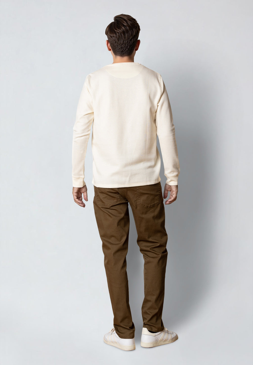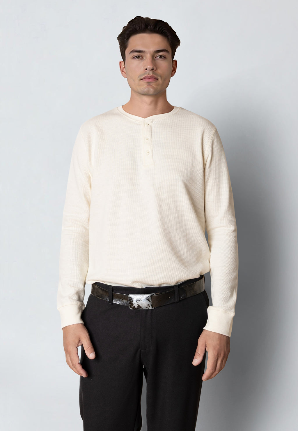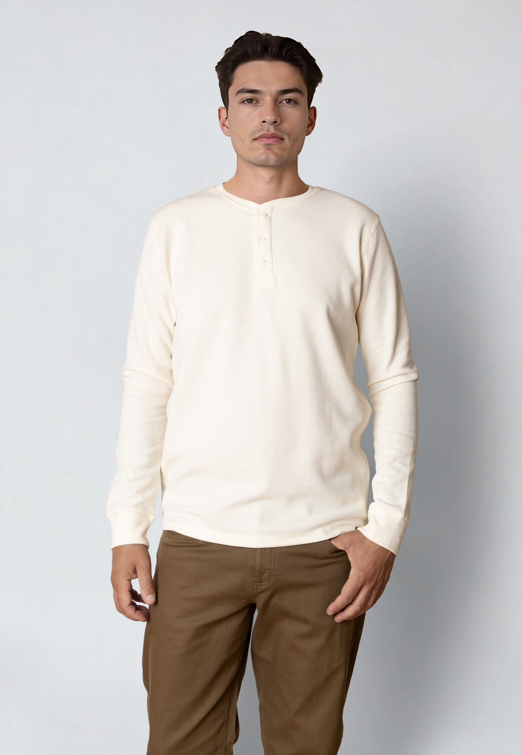 A timeless grandad long-sleeve t-shirt crafted with all the essential details. Featuring a buttoned closure, classic textured fabric, a rounded neckline, and long sleeves, this piece effortlessly blends style and comfort. Designed with a regular fit, it’s perfect for everyday wear.
