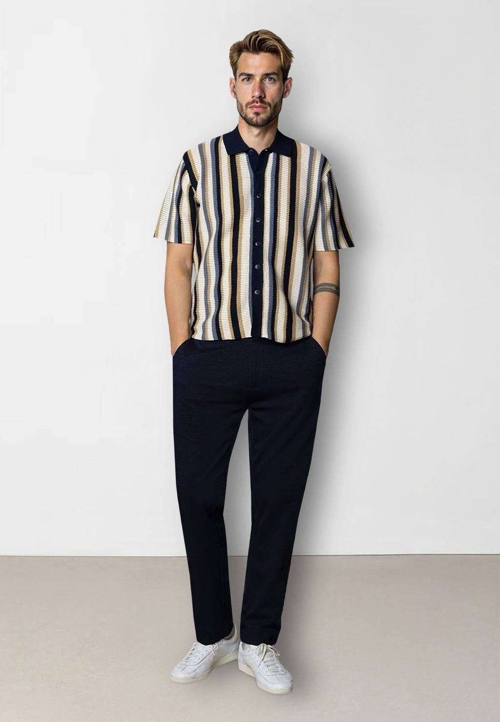 DANIEL KNITTED SHIRT - Ecru/Blue striped