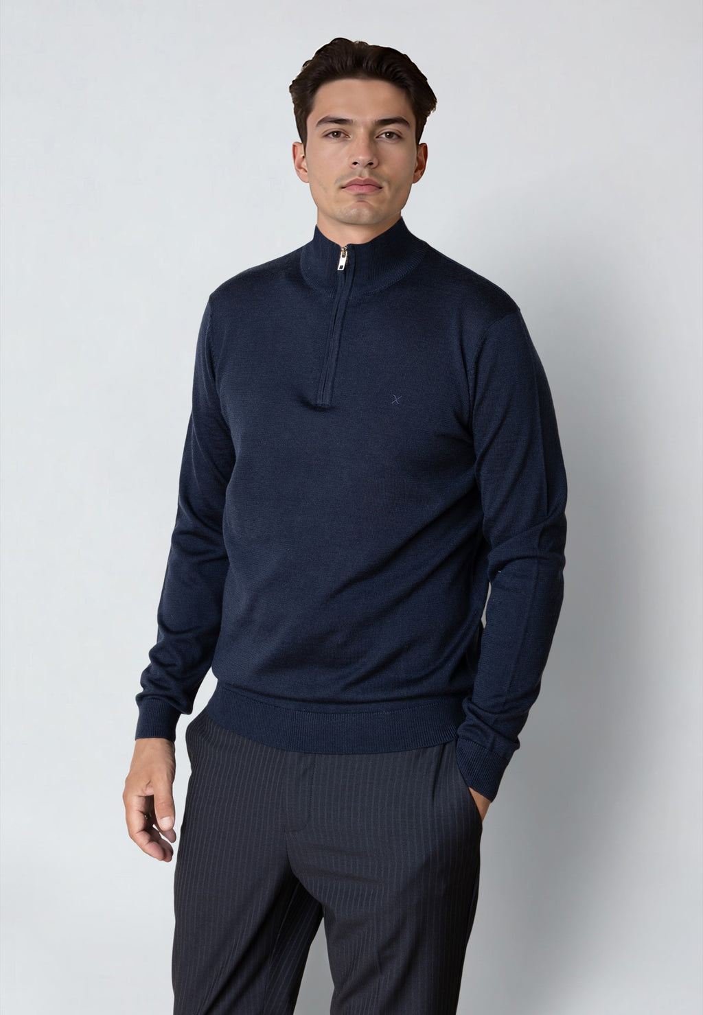 Knitted jumper crafted from a premium merino wool blend. Designed in a regular fit, this jumper combines comfort and style. Merino wool, sourced from Merino sheep, is renowned for being the finest wool used in luxury apparel. It naturally wicks moisture away from the body, ensuring you stay comfortable all day.